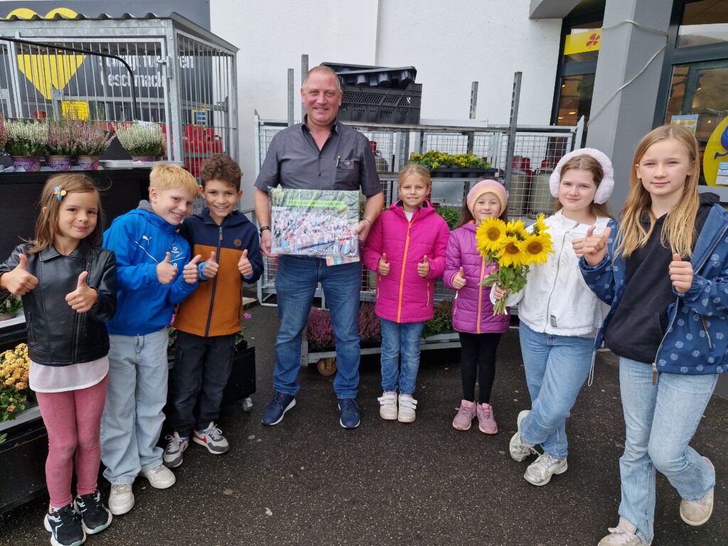 Heute marschierte eine kleine Delegation aus den 3. und 4. Schuljahren zum ortsansässigen Edekamarkt um Herrn Sascha Borsch ein dickes Dankeschön in Form einer bedruckten Fotoleinwand zu überbringen. Seit nunmehr 5 Jahren spendet er allen Kindern der Grundschule Bad Salzig den überaus nützlichen und von Frau Wagner individuell gestalteteten schuleigenen Lernplaner. Das ist mehr als großzügig und wir sagen von Herzen DANKE LIEBER HERR BORSCH.